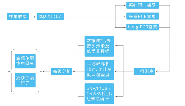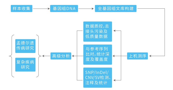 人全基因组测序可更全面地挖掘基因序列差异,包括单碱基突变、插入缺失变异、拷贝数变异和结构变异,可用于基因多样性分析、遗传进化分析以及致病和易感基因筛选等,已成为人类遗传学、转化医学和群体进化领域最为迅速而有效的方法之一。