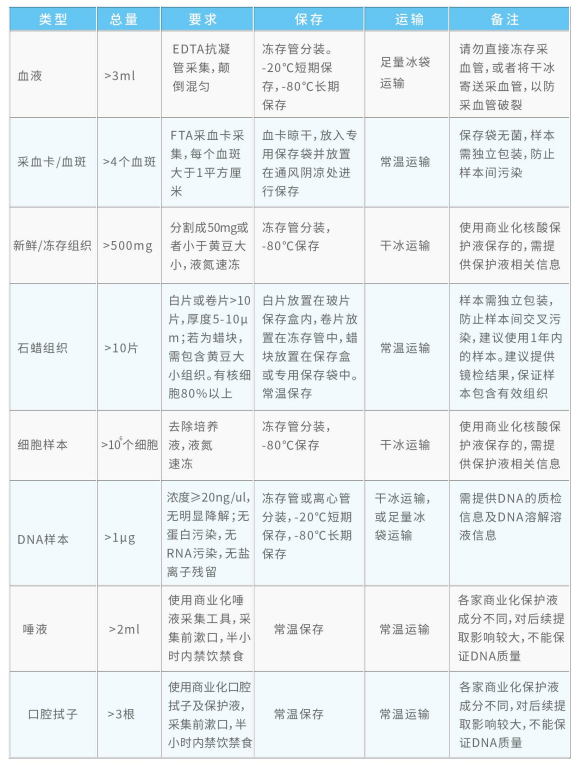 基因组产品样品要求:
